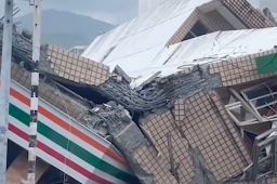 【00:00:00】 据中国地震台网正式测定,9月18日14时44分台湾花莲县发生6.9级地震。玉里镇一所小学内大片建筑倒塌,现场杂乱满地碎石。