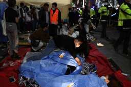 【22:05:00】 据披露,事发现场是一个18平方米的空间,有300多人聚集于此。随着一些人倒下,数百人向一侧倾斜,最先倒下的一批人开始被压身下,最终被压近7层。