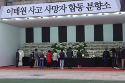 【20:05:00】 10月31日,韩国总统前往悼念梨泰院踩踏事故中的遇难者。位于韩国首尔市龙山区梨泰院站1号口附近,也有韩国民众送来鲜花和祭品悼念逝者。直击现场>>