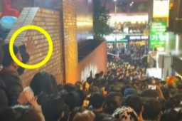 【23:05:00】 据报道,在梨泰院踩踏惨案发生前几个小时,在同一条小巷出现了事故中类似的困境,万幸人群中一名女性站了出来,在一侧酒店的楼梯上大喊维持秩序。