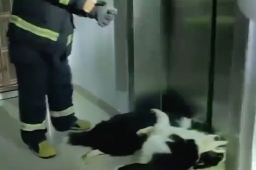 【22:05:00】 近日,江苏苏州一男子酒后牵着两只边牧下楼遛狗,结果刚走进电梯便瘫坐在地,狗绳被夹在电梯门缝内。最终,男子被消防成功救出,两个狗一死一伤。