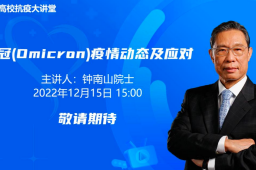 【22:05:00】 12月15日,全国高校抗疫大讲堂,钟南山院士谈新冠疫情动态及应对,提出“不应为感染而害怕”“居家注意常做抗原检测”等8条加强个人防护的建议。