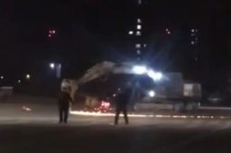【22:05:00】 12月14日晚,河南郑州一工地发生惊险一幕:一辆工程用路面钻机当街疯狂破坏,致一人死亡多车受损,劝阻无效后肇事男子被击毙。