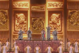【03:05:00】 胭脂、缙云、福色……兔年春晚,赵丽颖、唐诗逸、姜爱东、苏海陆、李袆然、王念慈共同带来《满庭芳·国色》。据统计,赵丽颖共唱了42个颜色名。
