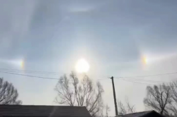 【04:05:00】 1月25日上午,辽宁铁岭市多地上空日晕、幻日、环天顶弧同时出现,出现“三个太阳”奇观。气象专家表示“幻日”是寒冷天气下的限定奇观。