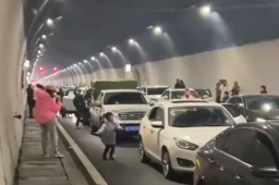 【20:05:00】 26日,从四川前往广州选择自驾返程的网友在隧道中遭遇了春节假期后返程高峰大堵车,众人纷纷下车开启运动模式,有人跳绳有人打羽毛球。