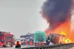 【00:05:00】 2月4日17时许,湖南许广高速南往北方向676公里路段,先后发生多起交通事故,涉事部分车辆起火。据警方通报,目前已致16死66伤。