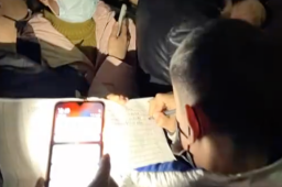 【00:05:00】 2月5日晚,在杭州元宵烟花大会现场,市民拍到小学生正在人群中补作业,妈妈在一旁打灯。