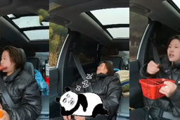 【02:05:00】 近日,江苏一对夫妻返程,妻子坐副驾驶又吃又喝了一路,吃饱了就躺下呼呼大睡。丈夫表示,780公里的高速路,老婆吃了700公里睡了80公里。