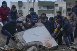 【00:05:00】 一名土耳其地震专家表示,土耳其东南部7.8级强震破坏力很大,约等于130颗原子弹发生爆炸,这次地震正发生在寒冬的深夜,这是一个非常恶劣的条件。