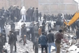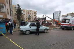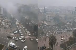 【01:05:00】 继6日凌晨土耳其东南部发生7.8级地震后,当地时间6日下午1时24分又发生7.8级地震。民众街头奔跑避险,建筑倒塌激起烟尘。