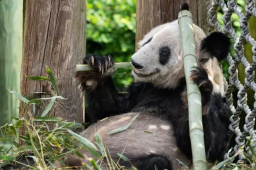 【04:05:00】 4月27日下午,经过约16小时的飞行,运送旅美大熊猫“丫丫”的货运专机在上海浦东机场降落,“丫丫”一到机场就收到了竹子。
