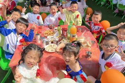 【21:05:00】 5月31日,安徽阜阳一幼儿园为庆祝六一儿童节,带全园200多名孩子体验本土“吃大席”。李园长表示,大席中有龙虾、烧鸡、牛肉、水果等。