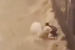 【14:05:00】 9月7日晚,广东沿岸遭暴雨袭击,香港天文台发出黑色暴雨警告。一名女子在过马路时被路面急流冲倒,画面十分凶险。