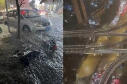 【16:05:00】 广州多区启动暴雨红色预警,番禺市桥片区内涝严重。番禺街坊在网上晒出视频,番禺宾馆锦鲤“出逃”,不少市民在大北路、东城市场见到锦鲤。