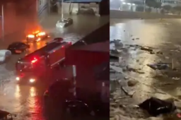 【16:05:00】 9月8日,广东东莞遭遇强降雨天气,虎门博涌社区一辆汽车在水中自燃。随后消防赶到救援,目前火灾已扑灭,无人员伤亡。