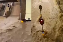 【13:05:00】 9月7日晚,广东沿岸遭暴雨袭击,香港天文台发出黑色暴雨警告。一名女子在过马路时被路面急流冲倒,画面十分凶险。
