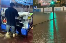 【15:05:00】 9月7日,暴雨突袭深圳,多处内涝积水严重,有商贩不惧暴雨,激流中淡定摆摊卖炒饭。网友表示:强者永不抱怨环境。