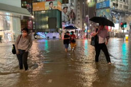 【13:05:00】 香港天文台7日晚发布黑色暴雨警告信号,香港多地出现道路水浸。网传视频显示,柴湾环翠道附近一名女子在过马路时被急流冲倒。