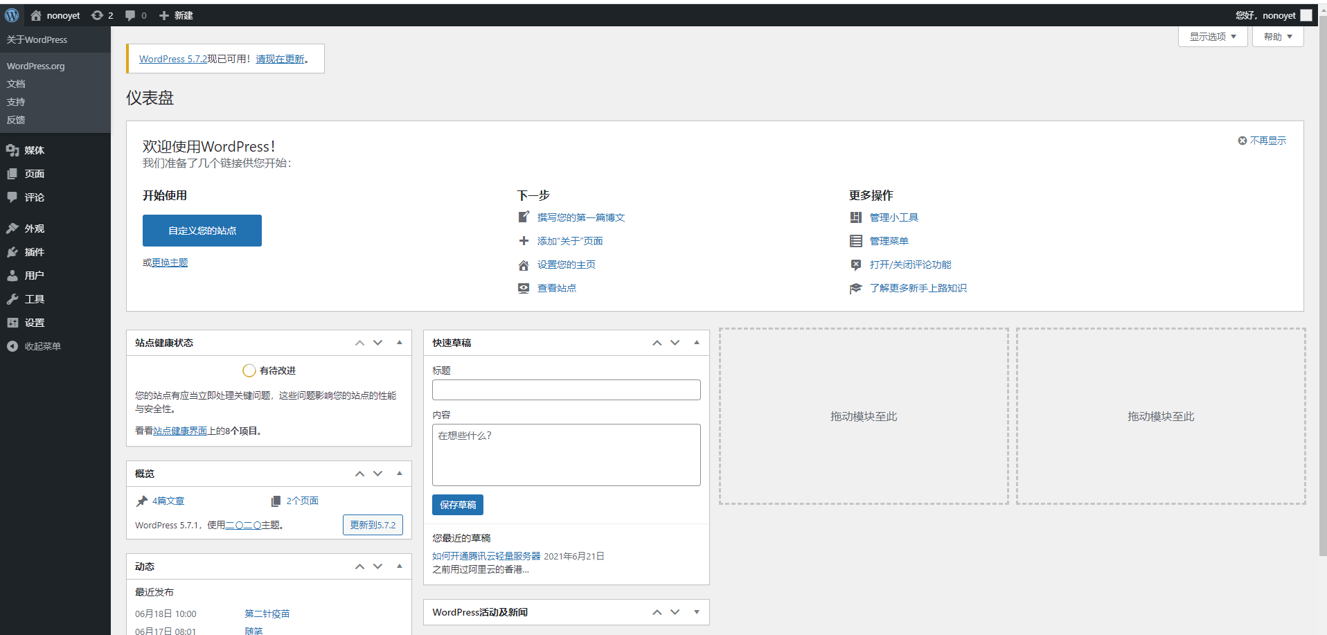 至此服务器算配置好了,我需要用wordpress来记录生活,分享技术,所以再看看默认安装的wordpress.