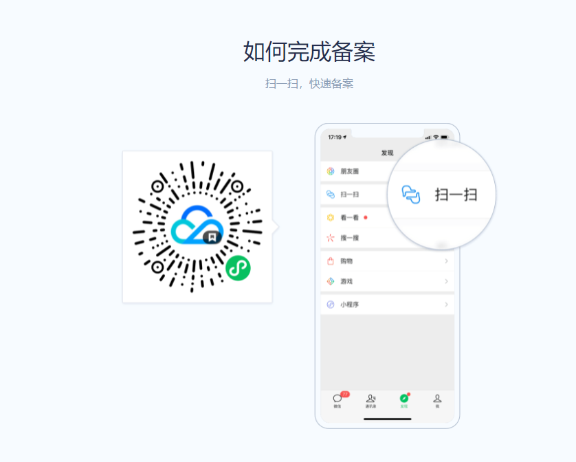 服务器备案需要通过微信云平台来操作,微信扫描如下二维码,按操作过程做就可以了,提交服务器备案前腾讯云会帮我们检查是否符合备案要求