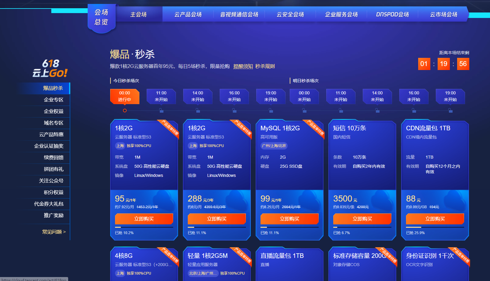 下面是这次618腾讯云的官方活动网站:https://cloud.tencent.com/act/618go?from=14439