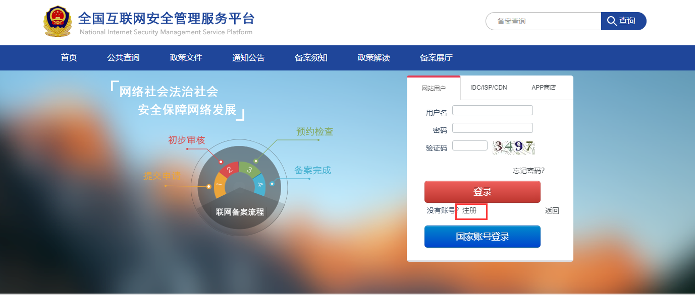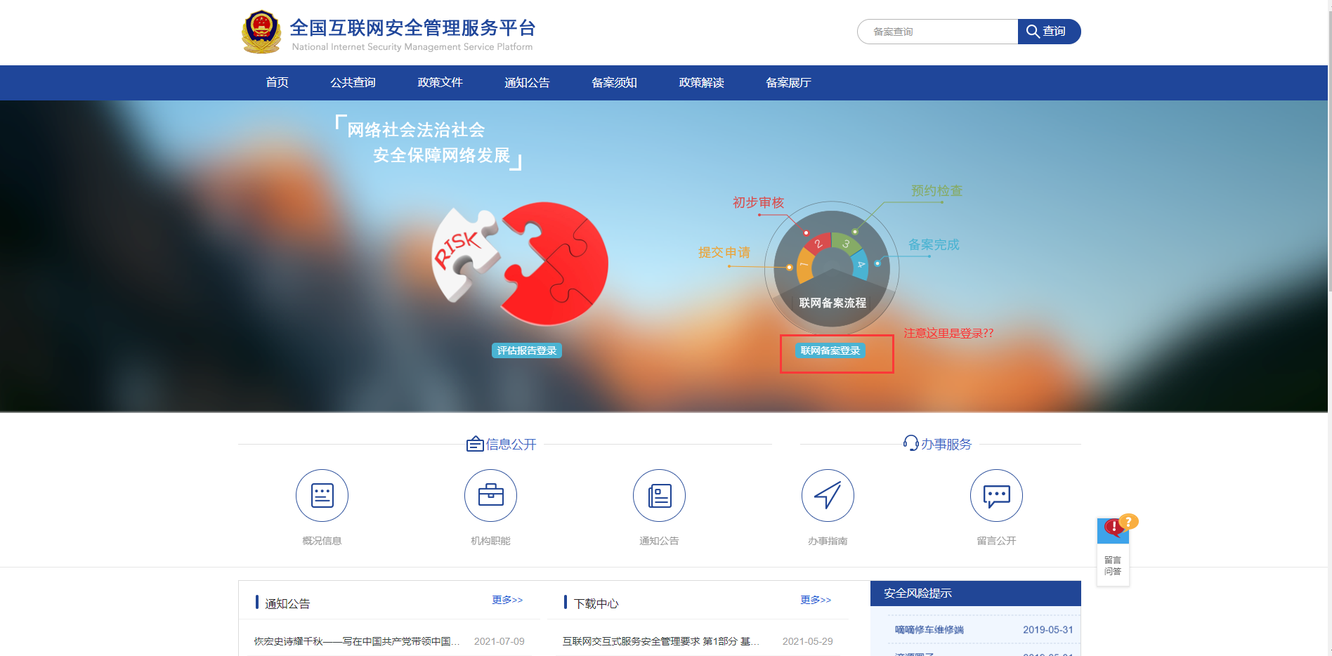 服务器备案完成后我们需要进行公安备案,备案地址全国互联网安全管理服务平台,